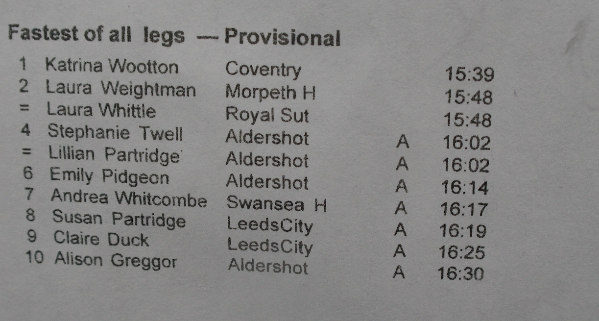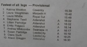 Well done to Laura Whittle who had a fantastic run at the National Road Relays earlier today. Racing against many of the best distance runners in the country she recorded the joint second fastest time of the day.